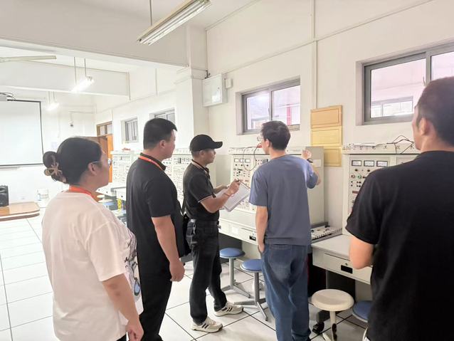 在检查现场,专家采取“现场核查 + 细节核验 + 即时问询” 的方式进行逐一排查。在消防安全设施检查中,专家仔细核对每具灭火器,确保其处于 “在岗在位、完好有效” 状态,同时重点查看应急逃生指示图的张贴,保障紧急情况下的疏散指引有效性。针对用电安全隐患,检查人员对各实训室拖线板的接地情况及线路老化问题进行全面排查,从源头防范电气火灾风险。