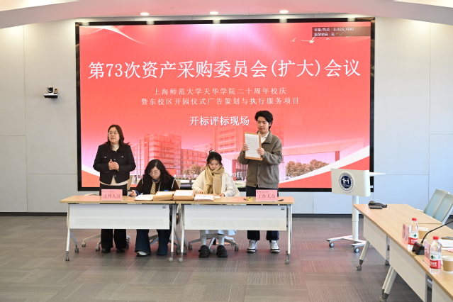 11 月 20 日上午,上海师范大学天华学院第 73 次采购委员会扩大会议在明华楼五楼远程控制中心召开,会议核心议题为 20 周年校庆暨东校区开园仪式广告策划与执行服务项目的开标、评标工作。校长龚春蕾、副总校监朱国权、副校长凌旭峰、采购委员会成员、相关职能部门负责人及纪委委员出席会议,会议由邵海波主持。