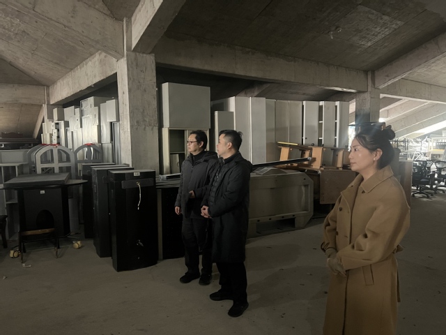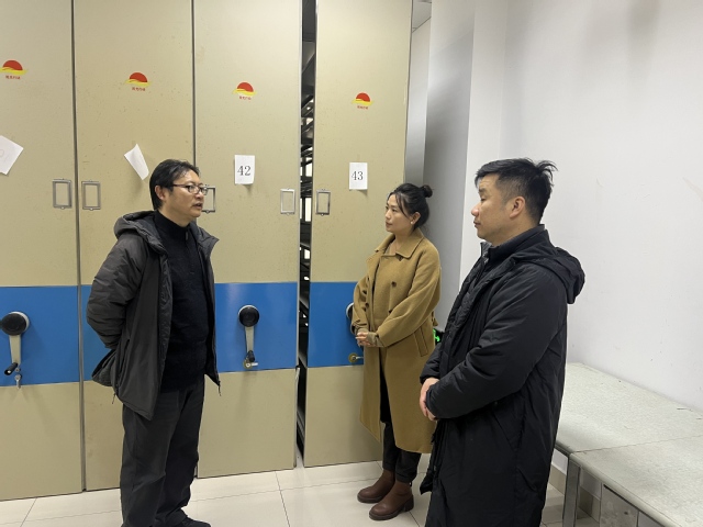 检查组首站前往图书馆,查看考研教室桌面、台灯等学生体验类资产,询问五楼仓库新增报废资产利旧及消防事宜,实地查看一楼密集书库50万册藏书的归档整理情况。